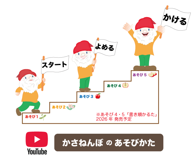 ステップ1〜3で「ひらがなの発音 → 字の形 → 読む」が完成!